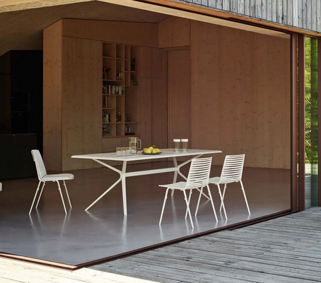 Dieser Tisch aus Aluminium hat die perfekte Größe für jeden Anlass. Hier finden bis zu 10 Personen bequem Platz und auf der geräumigen Tischplatte gibt es genügend Raum für Speisen und