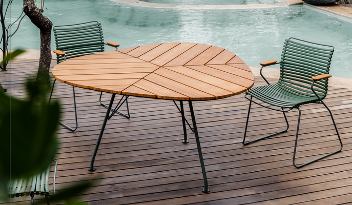 Der Tisch ORON ist die perfekte Illustration unseres Konzepts "Design fürs Leben". Die Lamellen-Tischplatte in leicht gewelltem Design wird Ihrem Außenbereich einen sanften Touch verleihen.