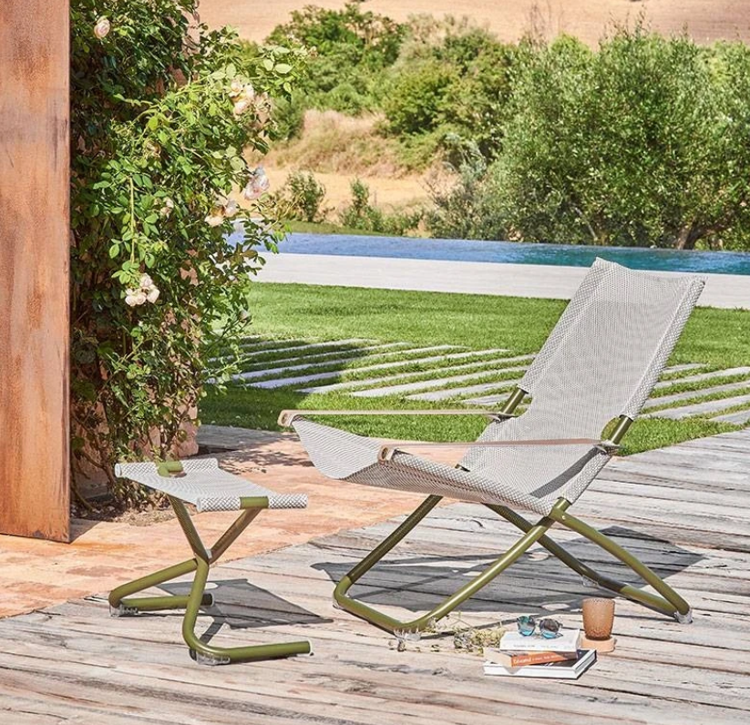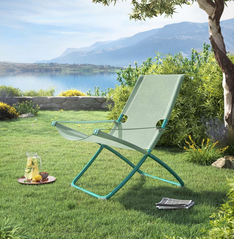 Dieser Liegestuhl ist eine Neuauflage eines klassischen Liegestuhles. Die Form ist großzügig und bietet viel Platz. Seine fröhlichen Farben machen gute Laune und peppen jeden Garten oder Ihre Terrasse auf. Das Fußteil ist die Ergänzung zu diesem bequemen wetterfestem Loungemöbel.